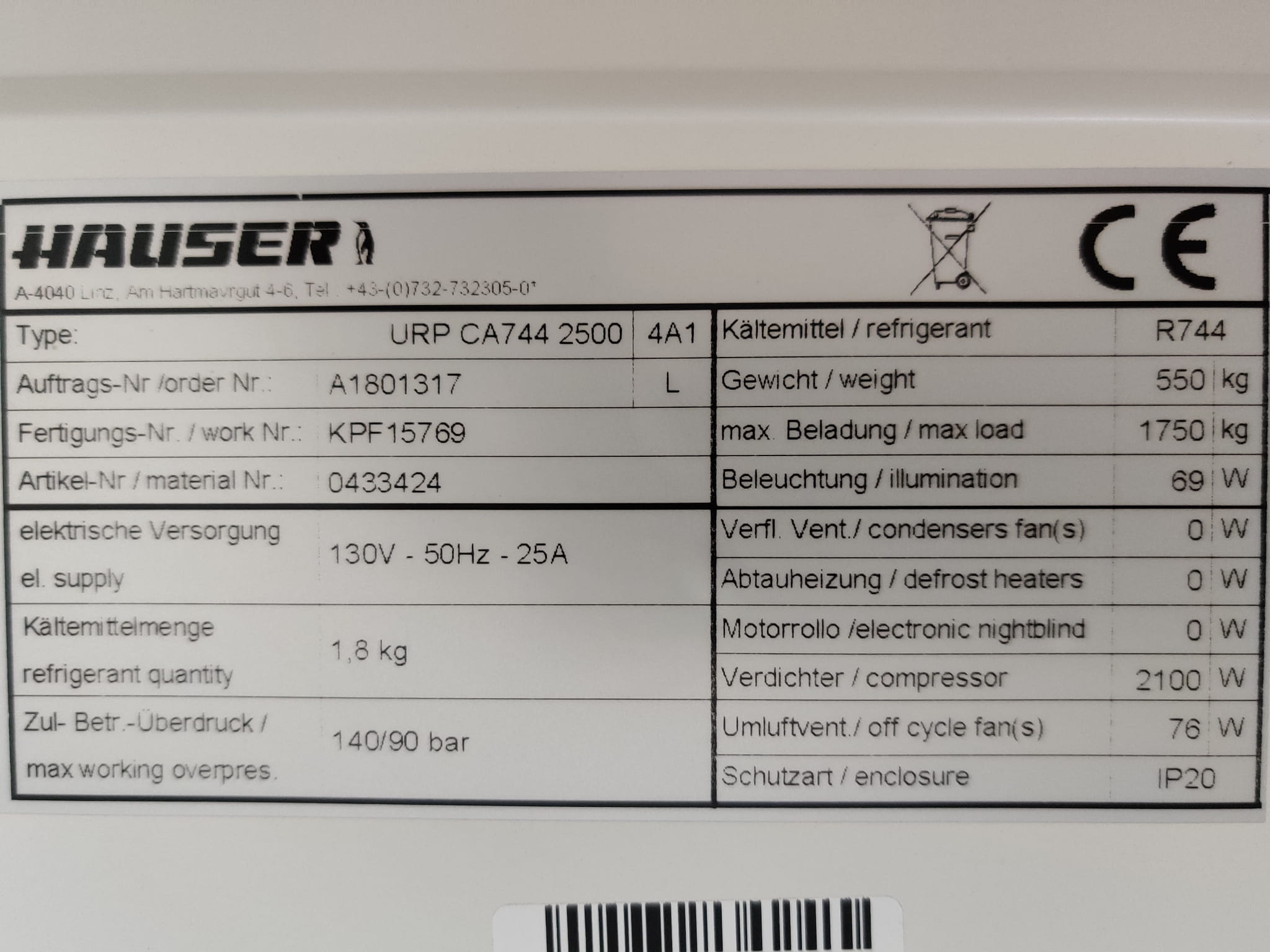 Regał chłodniczy HAUSER, agregat zewnętrzny